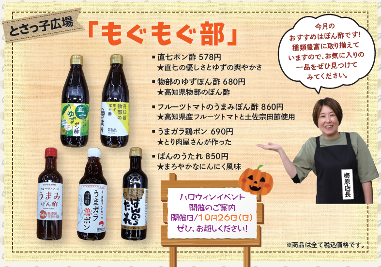 今月のおすすめはぽん酢です!種類豊富に取り揃えていますので、お気に入りの一品をぜひ見つけてみてください。