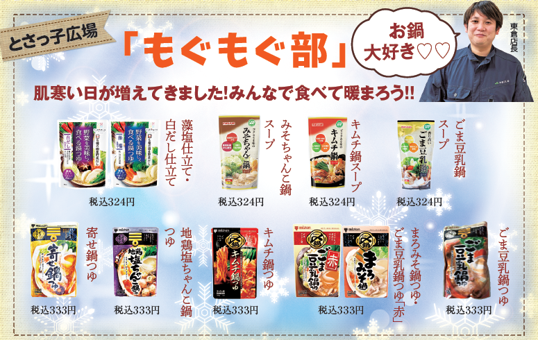 今冬は寒くなる?寒い日は温かいお鍋が恋しくなりますよね。ぜひ野菜やお肉、お魚などと一緒に鍋つゆもお買い求めください。
